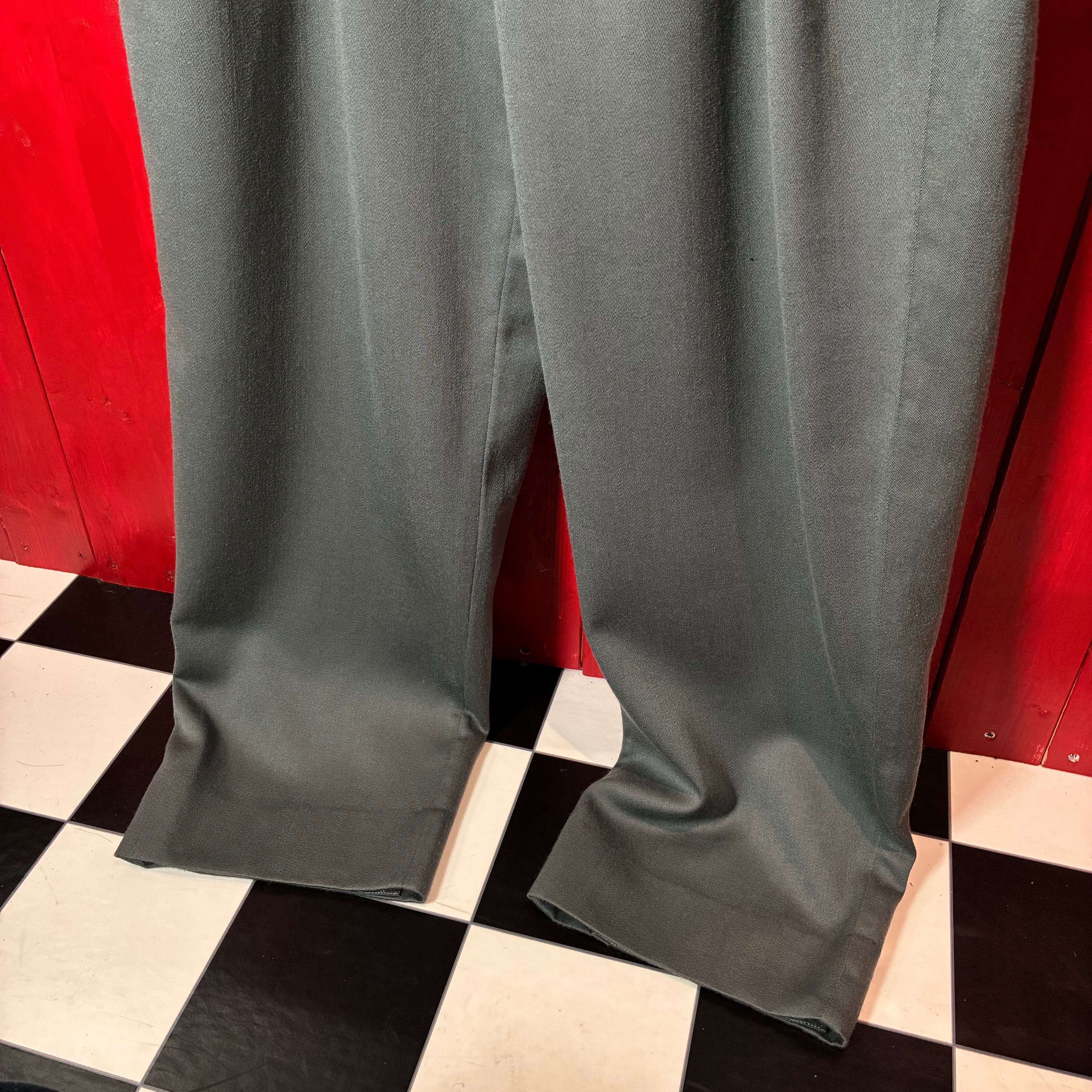 ヴィンテージ スラックス 90s ウールスラックス 3タック ワイドパンツ グリーン グレー 古着 メンズ レディース ドレスパンツ クラシック