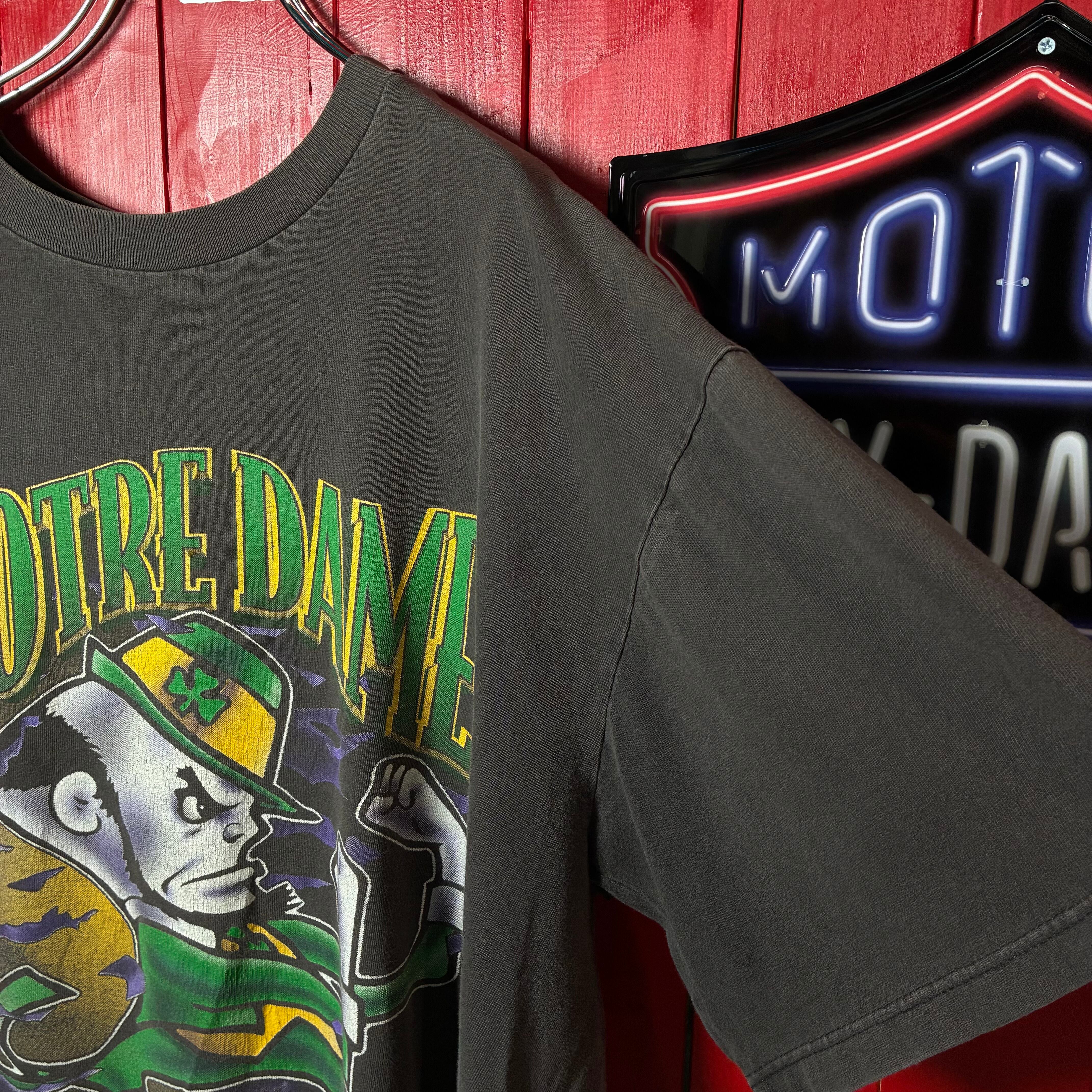 ノートルダム NOTRE DAME カレッジTシャツ NUTMEG USA製 両面プリント フェード ブラック FIGHTING IRISH ヴィンテージTシャツ 00s
