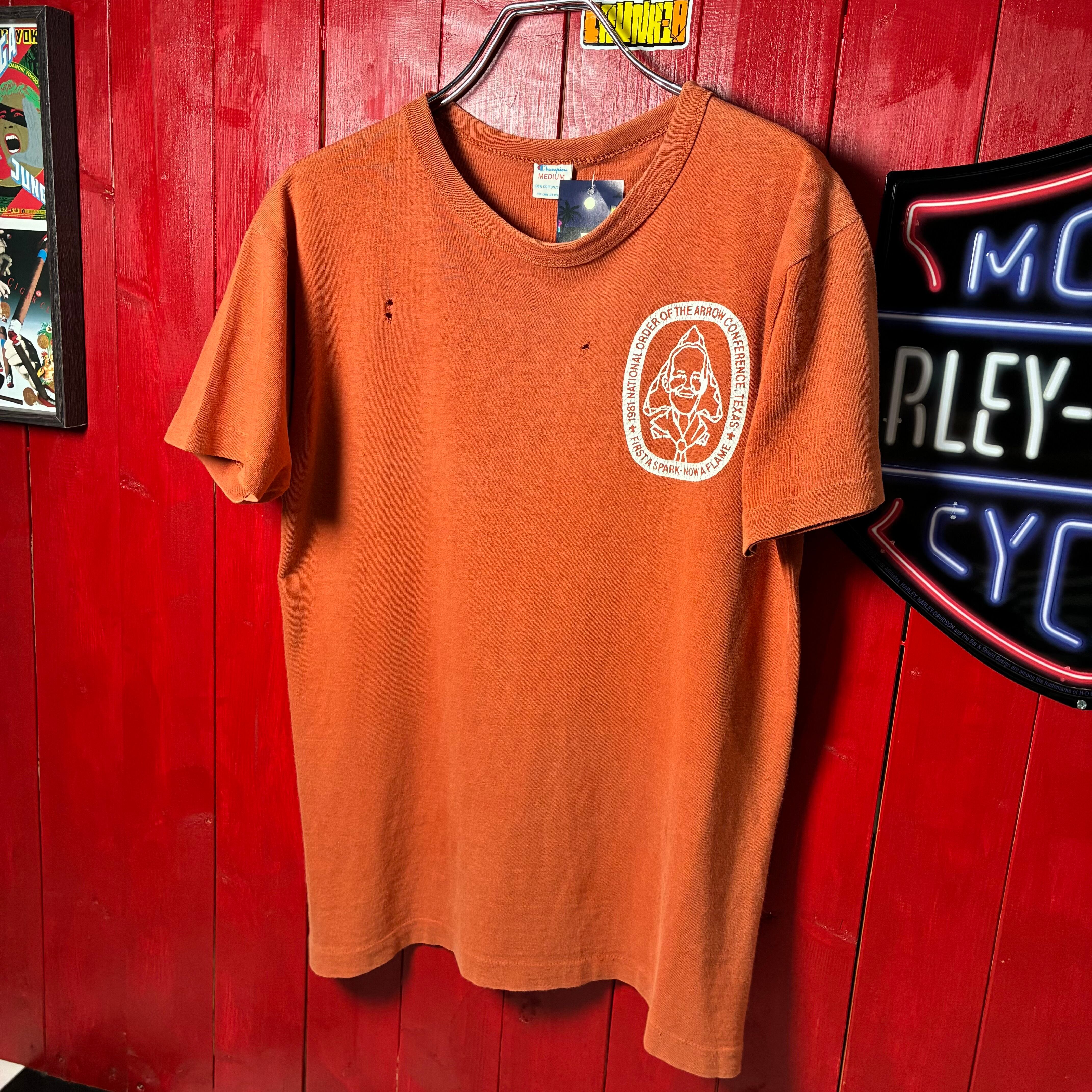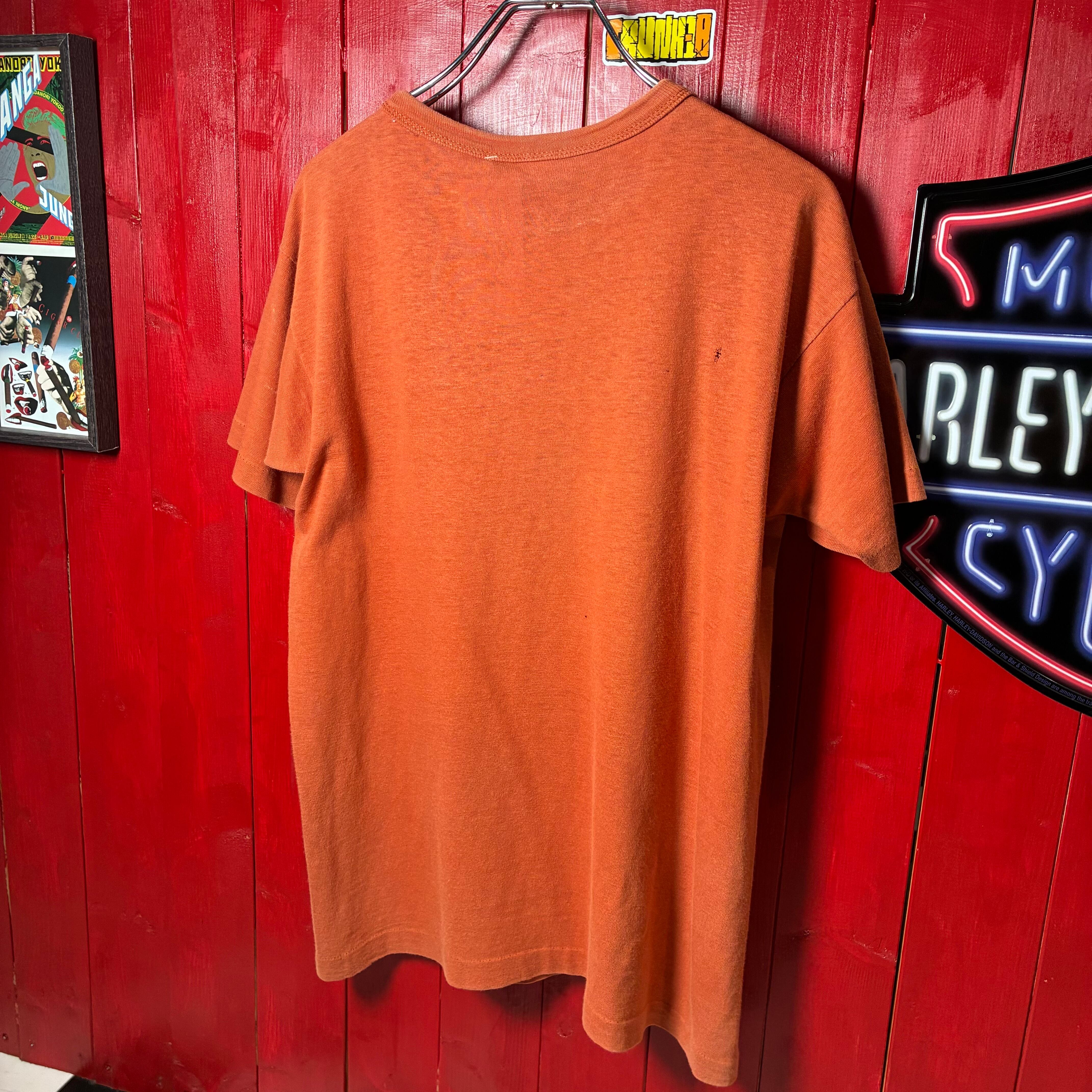 80s USA製Champion ヴィンテージTシャツ オレンジ ワンポイント シングルステッチ