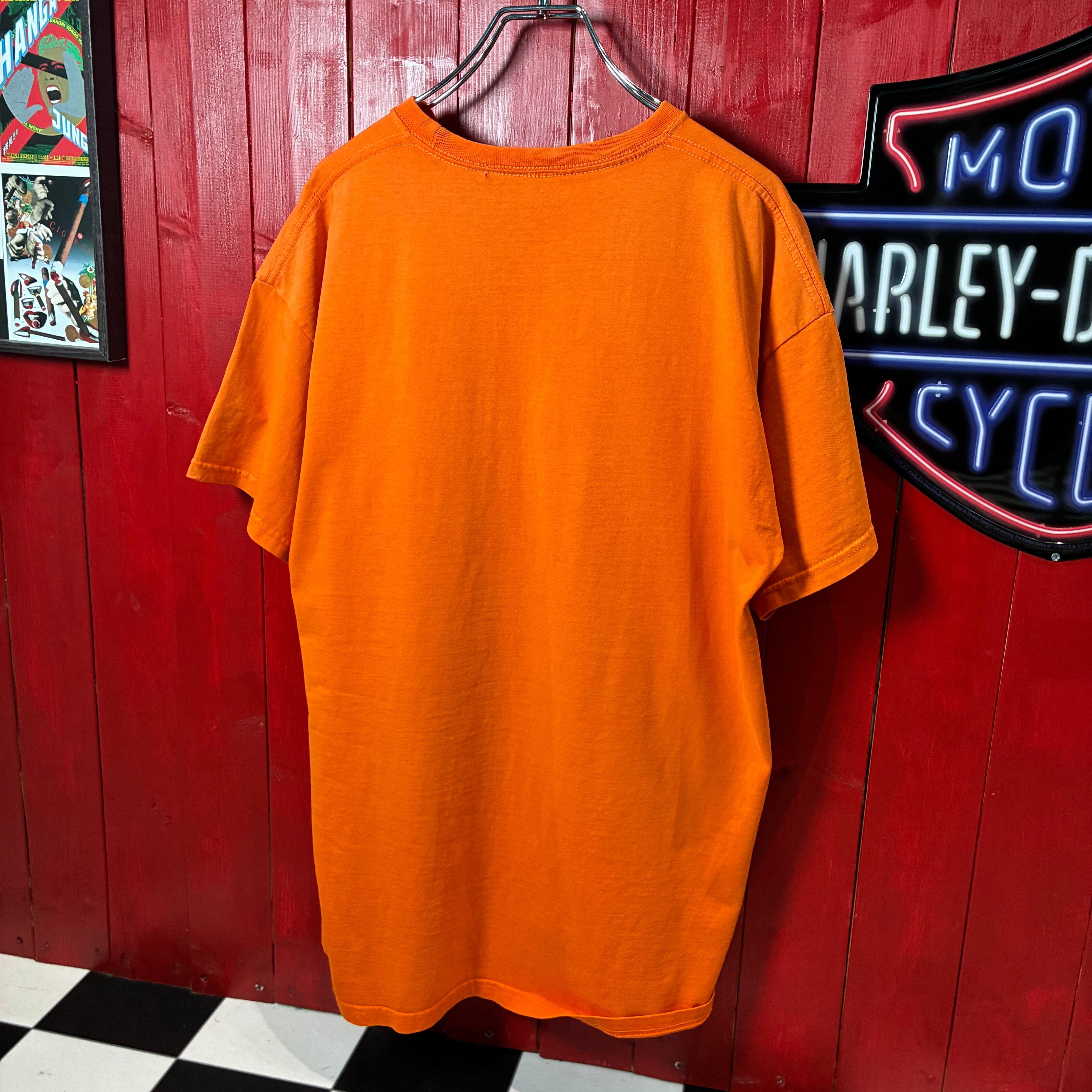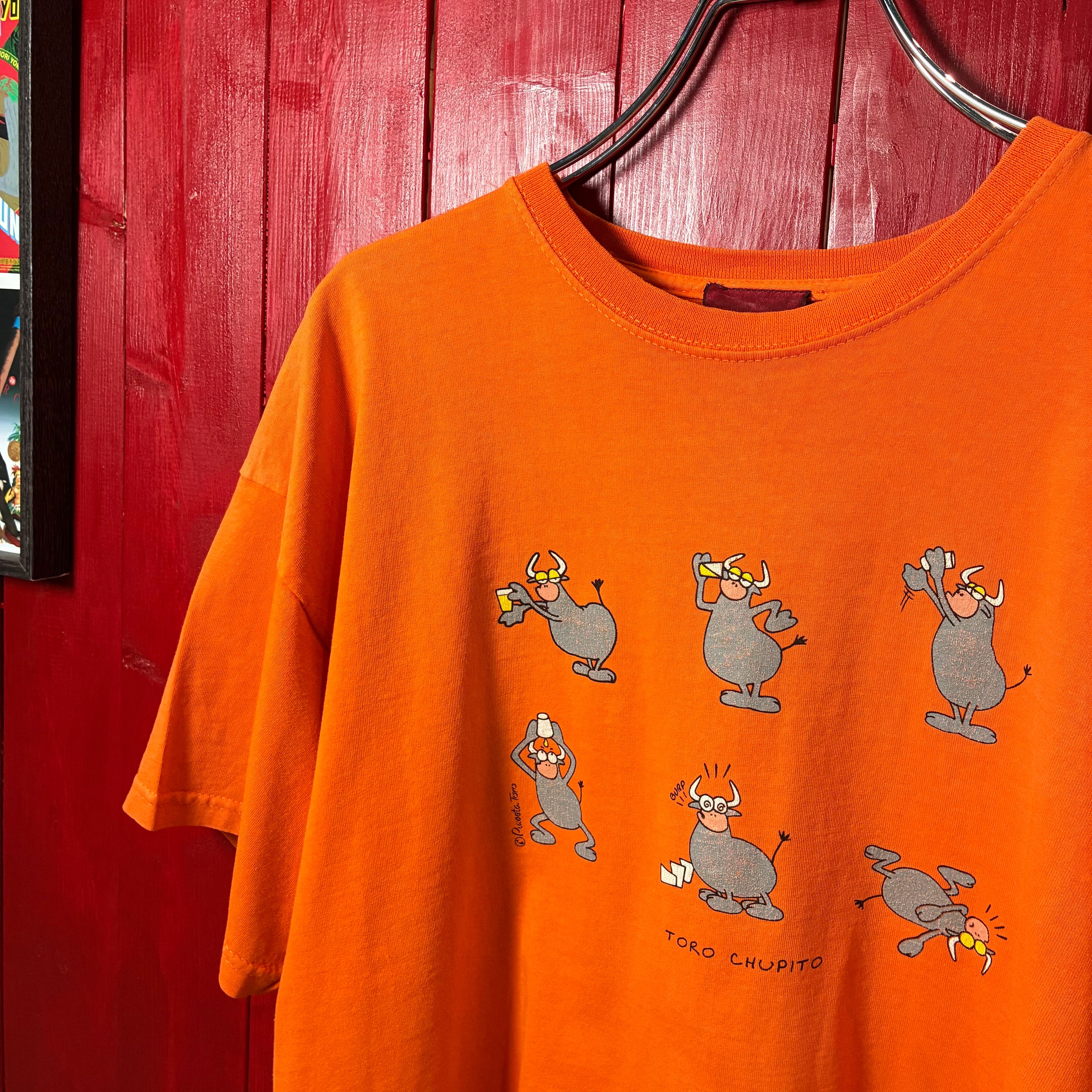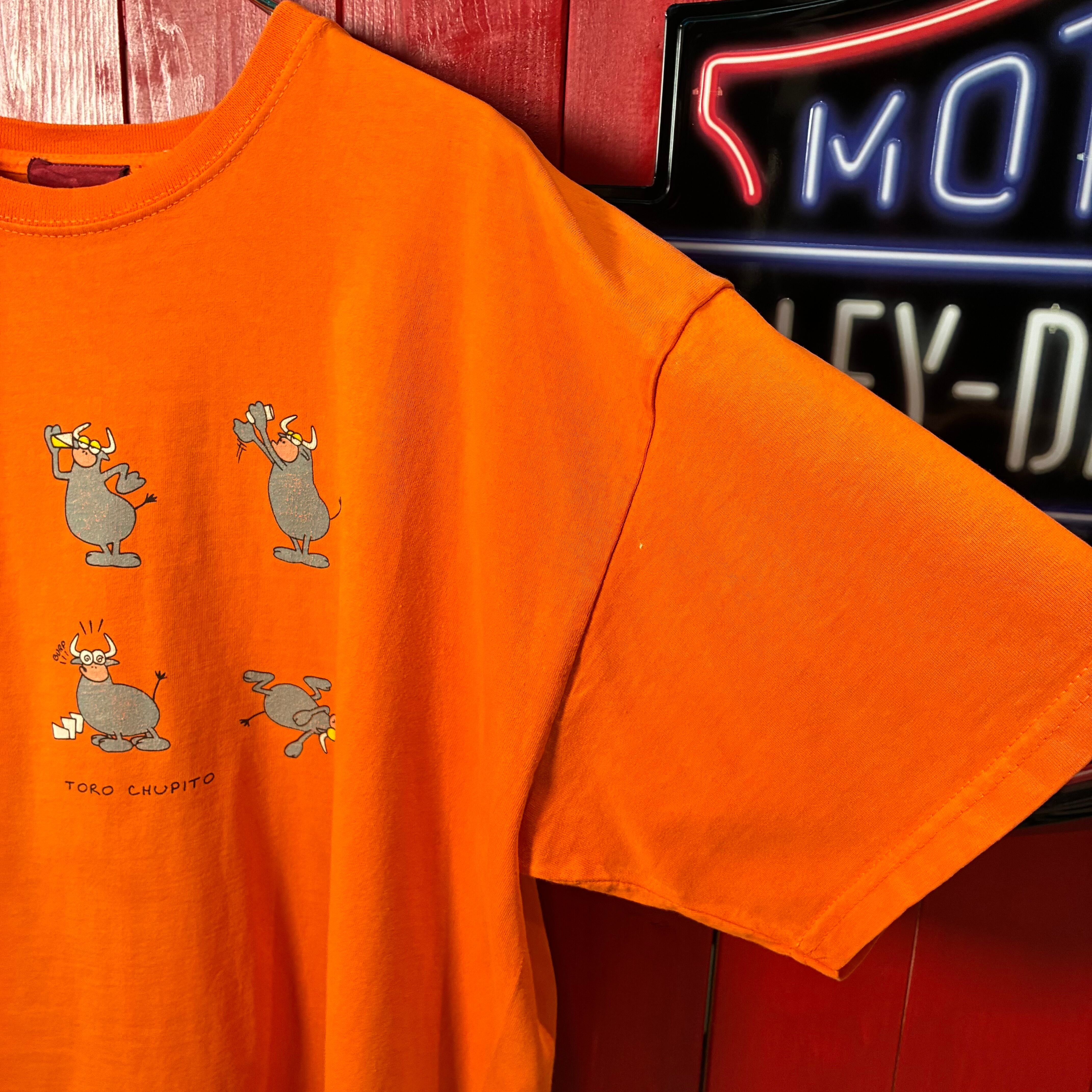 デザインTシャツ グラフィックT 牛 モチーフ オレンジT ユーモアTシャツ 海外デザイン 古着 ストリート カジュアル