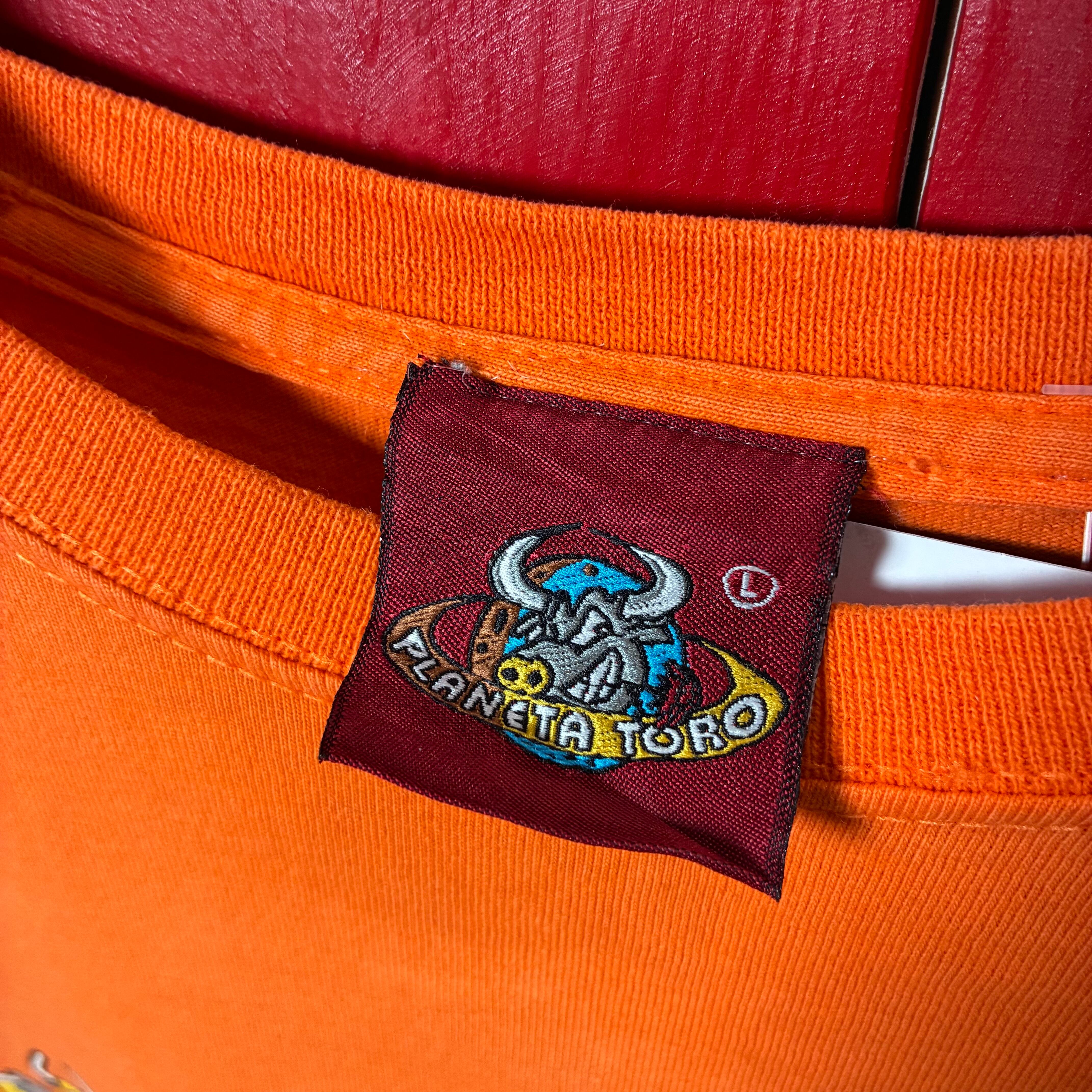 PLANETA TORO お酒飲んで酔い潰れていく牛Tee オレンジ L