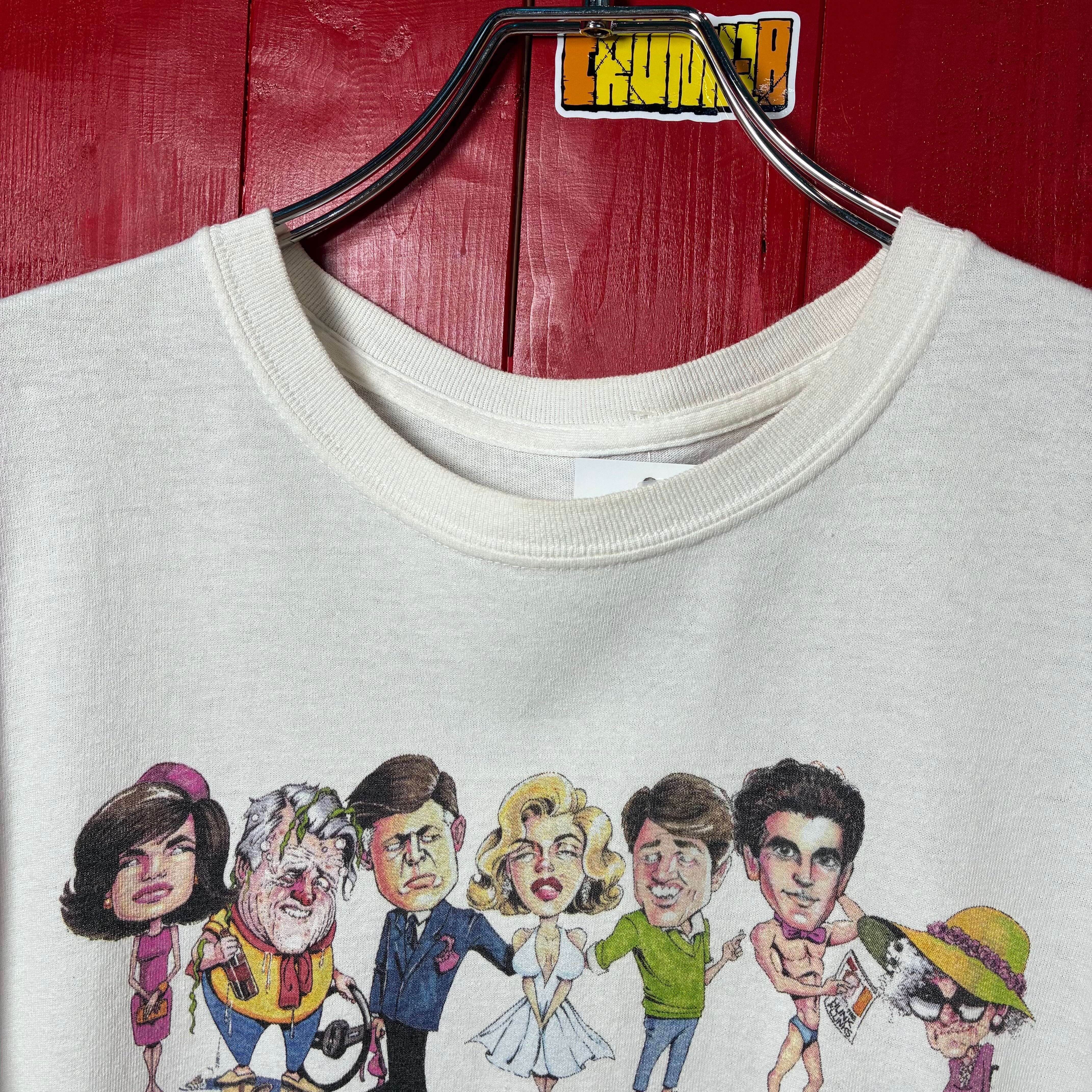 ケネディファミリー マリリンモンローとか有名人勢揃い風刺ノリTee 白