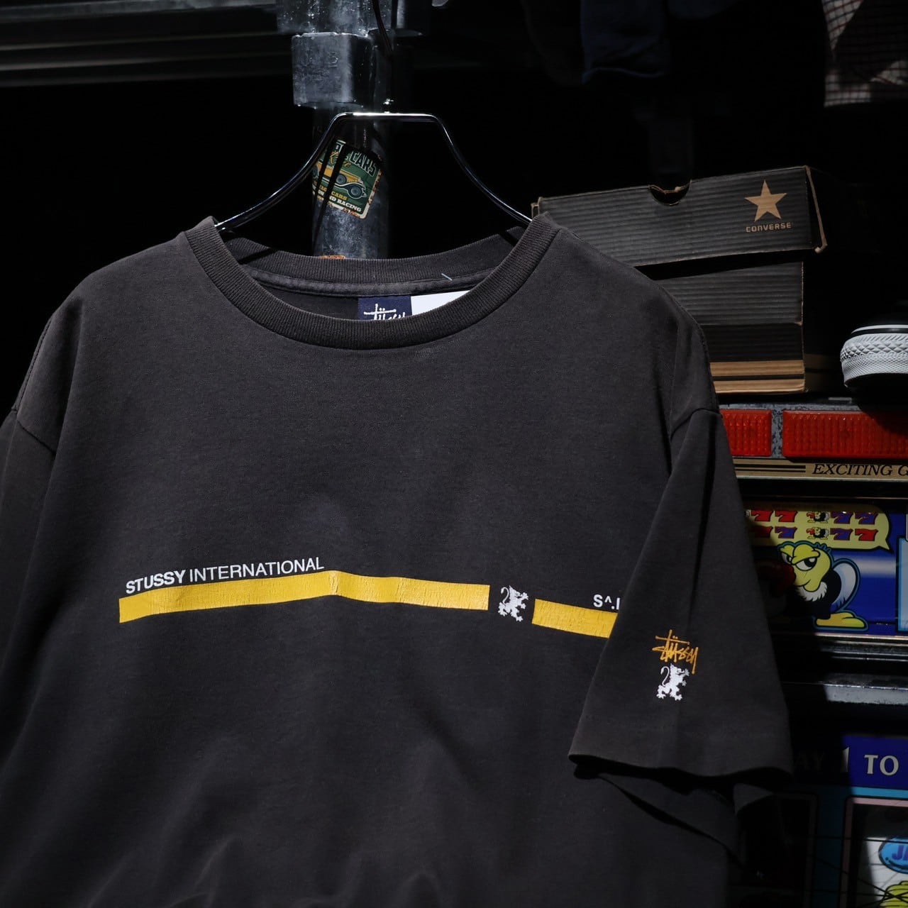 【Made in USA 90s】OLD STUSSY INTERNATIONAL Black Faded Tee L