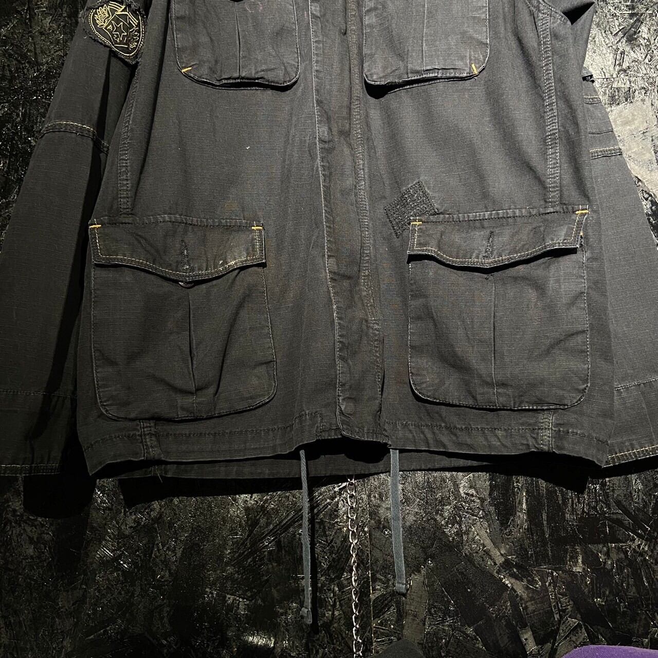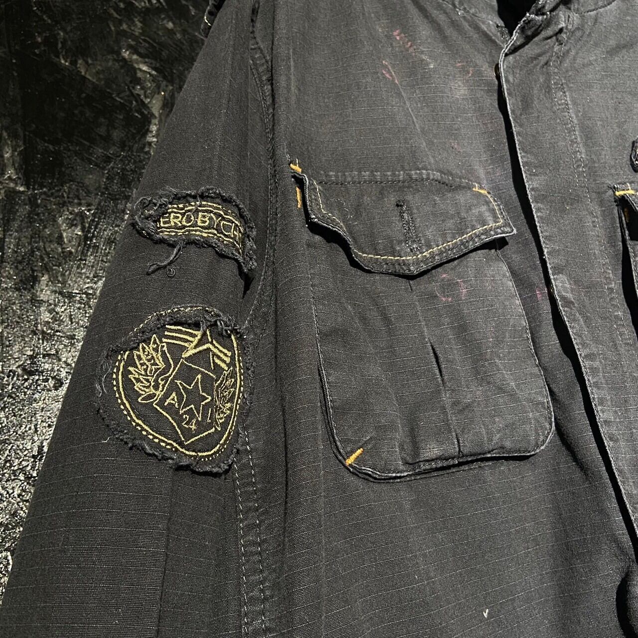 フェードブラックにヤレ感のあるワッペンやバックのステンシル風のプリントが雰囲気抜群です。