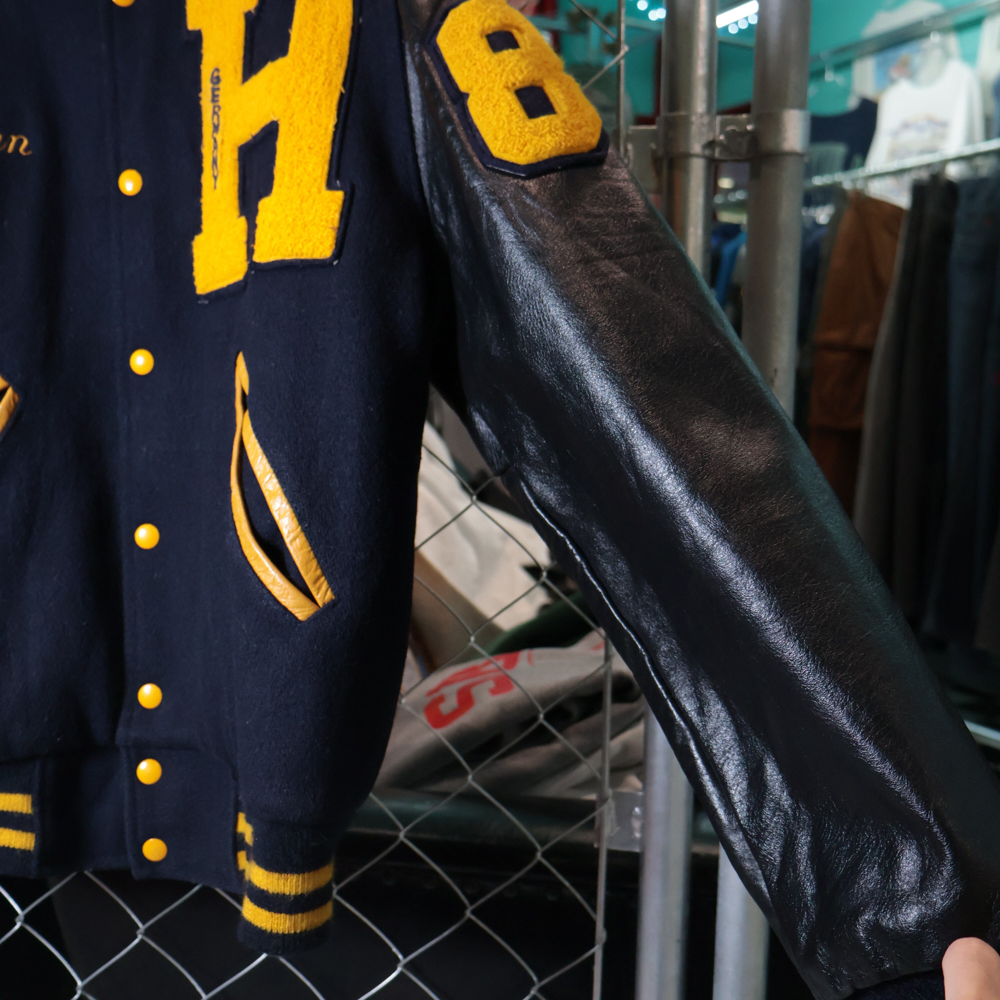 80s ADMIRAL レザー×ウールスタジャン ブラック×イエロー